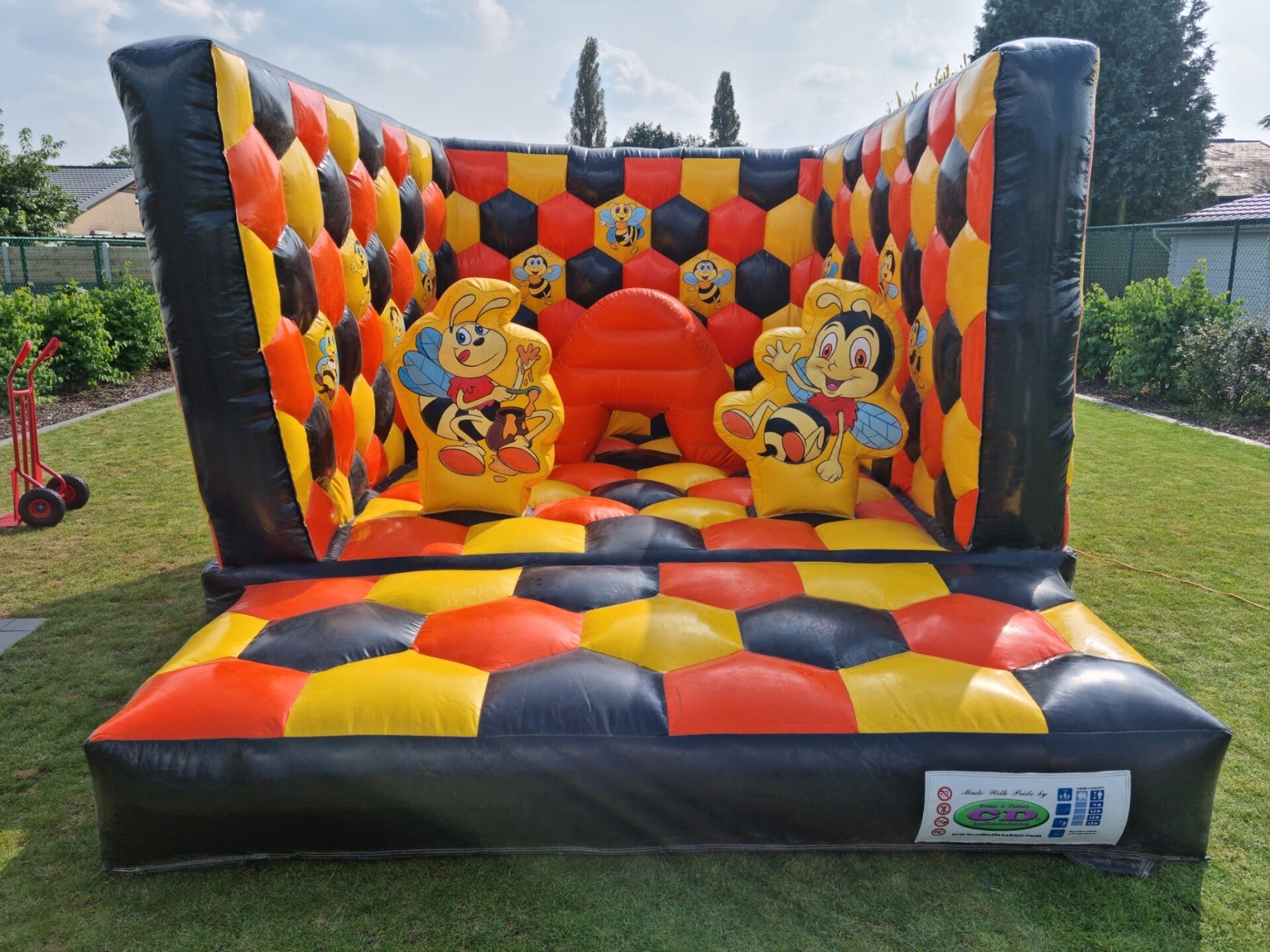 op alle Springkastelen en deels op de attracties & spelen